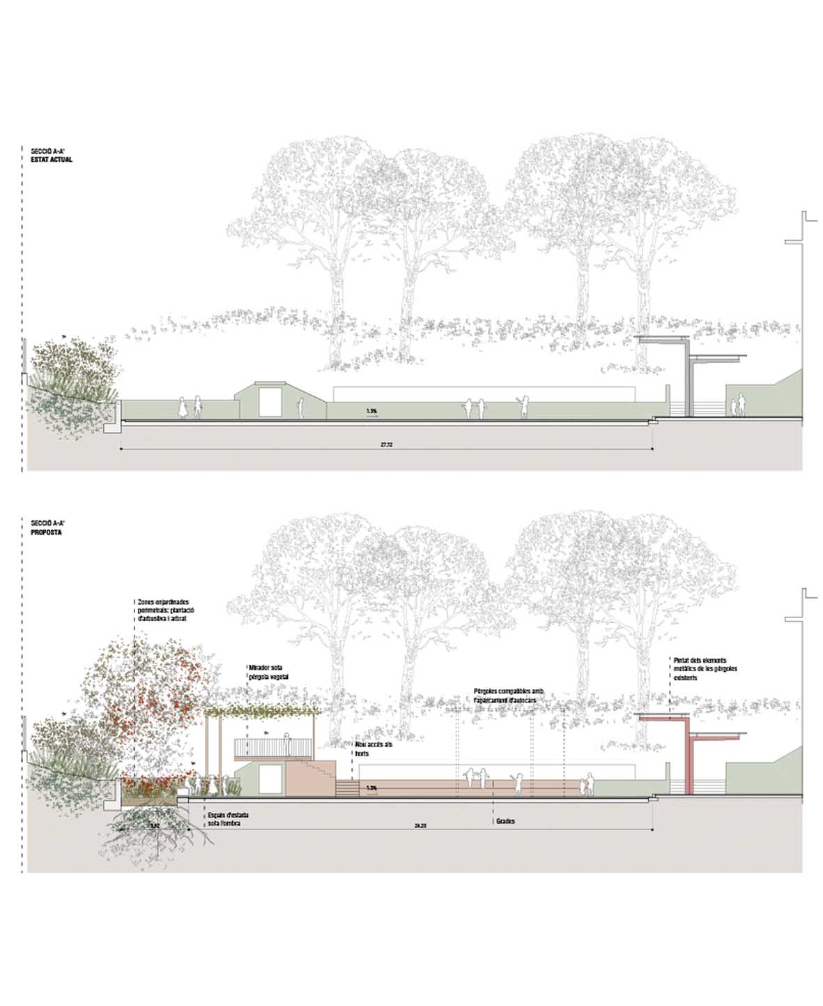 · Bring nature closer to the recreation area, enhancing the relationship with the existing vegetation and blurring the built boundaries. It will be necessary to improve the conditions of the existing vegetation considering the anticipated drought periods and increase green infrastructure under the same criteria.