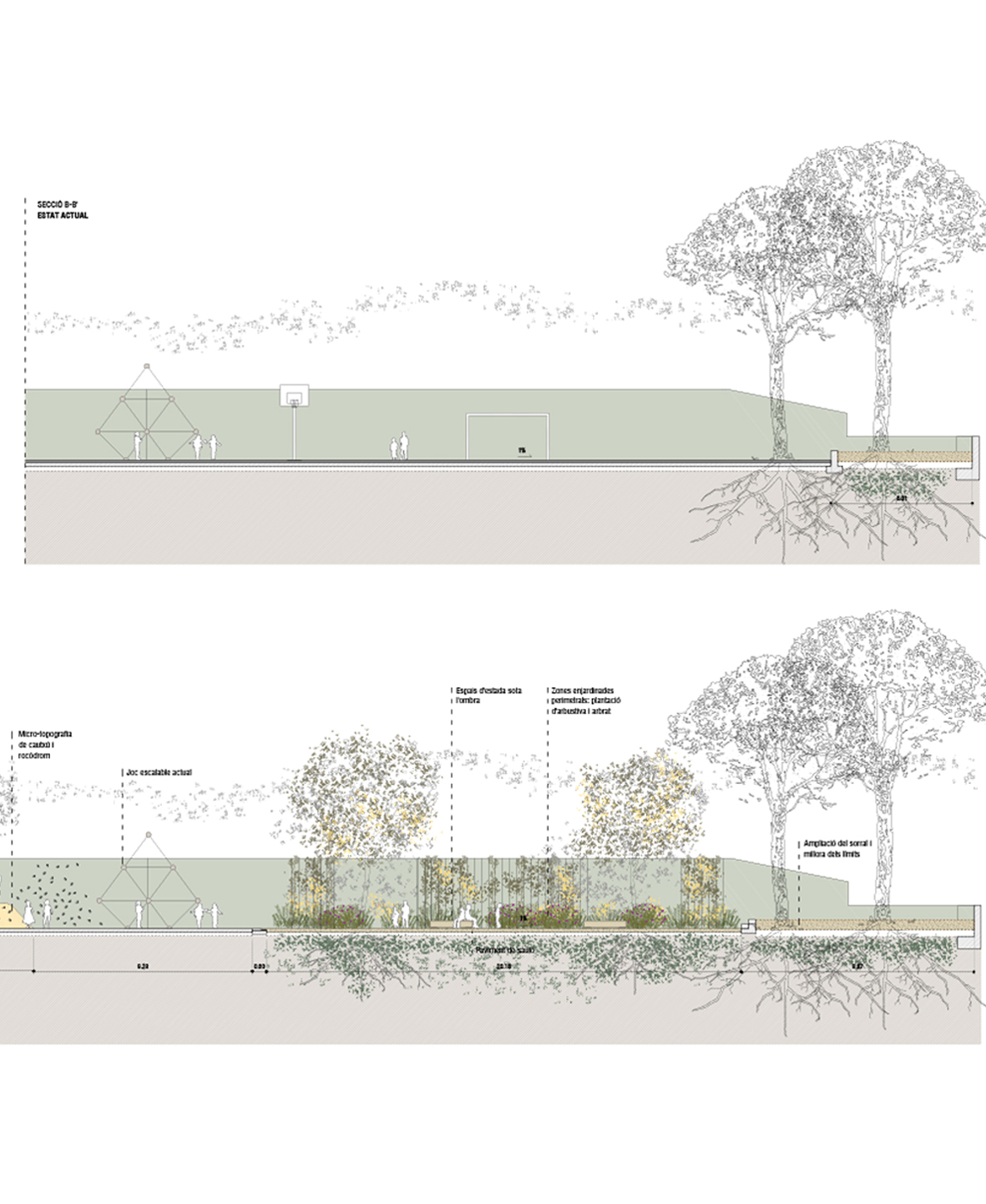 The proposal is an architectural and landscaping response to the improvement needs of the school playgrounds, related to the configuration of spaces, general use, and environmental aspects.