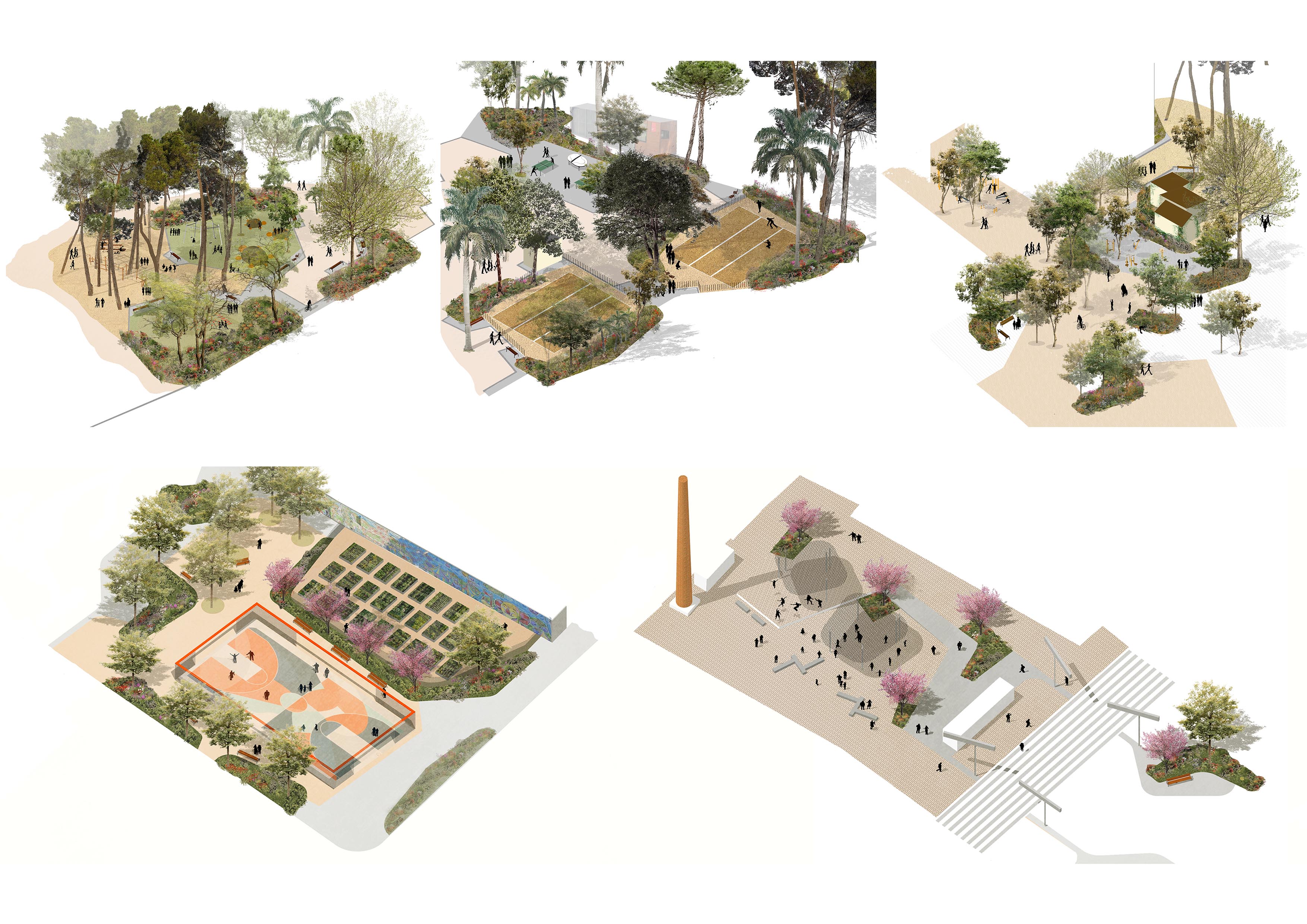The approach is based on the idea of a single space that brings together the three current sub-spaces, generating a gradient from the Bacardí gardens, the most naturalised space, to the Plaza de las Cerámicas Vicens, which, due to its location on a slab, will always be the space with the least possibilities for planting.