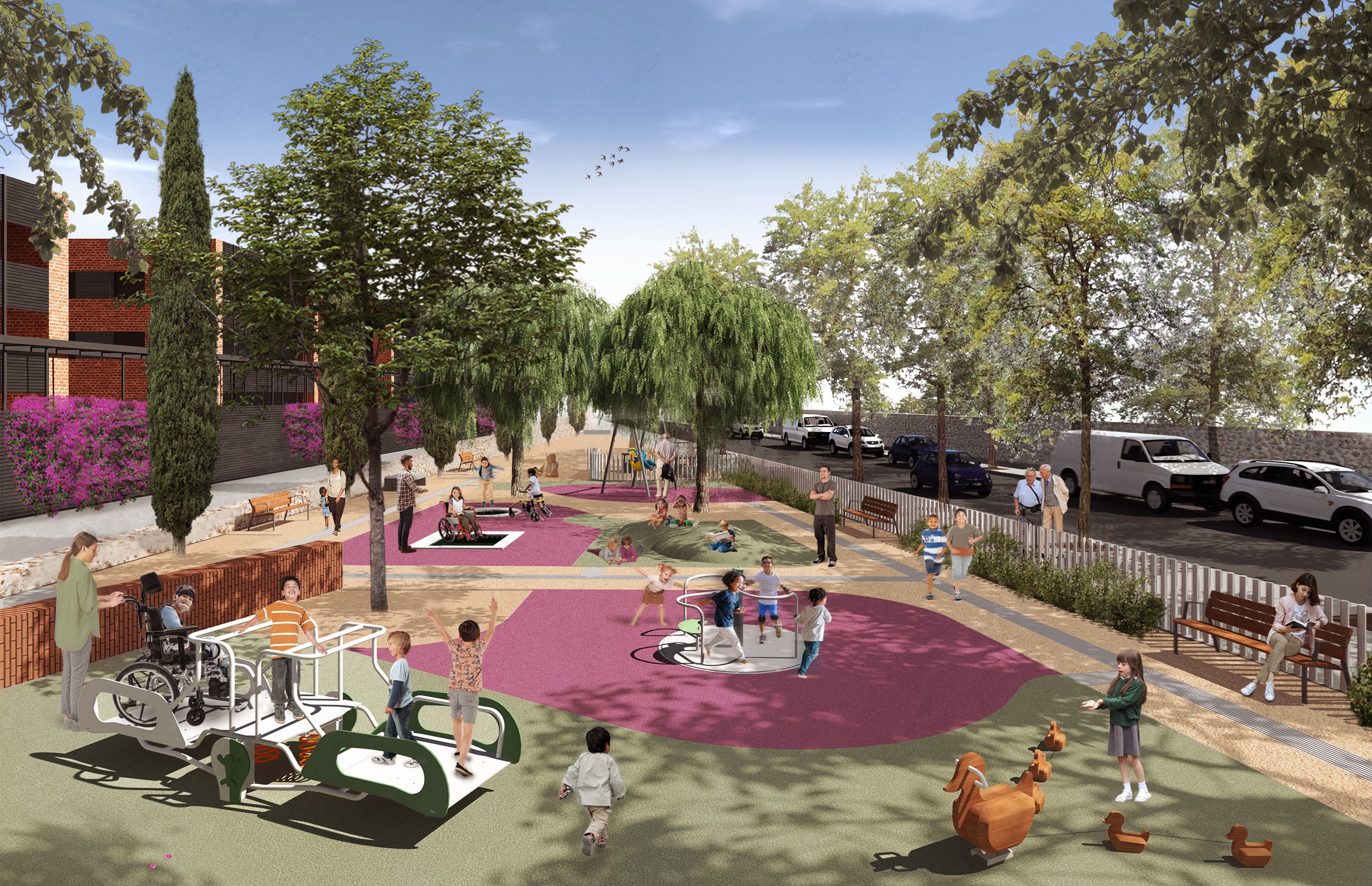 Fully accessible play area in Plaça Emili Mira, in Sarrià-Sant Gervasi, Barcelona