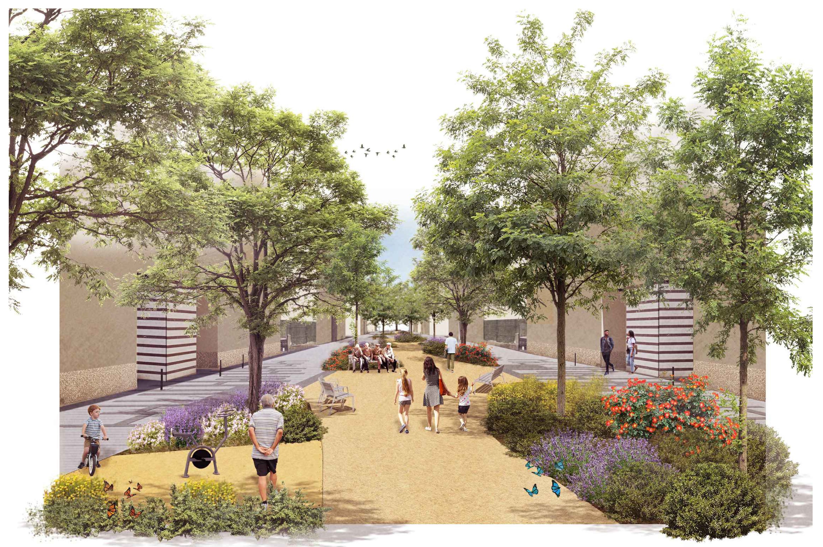 The project proposes a complete renovation of the promenade, prioritising green areas and restricting the passage of vehicles, creating a more pedestrianfriendly space and promoting biodiversity.