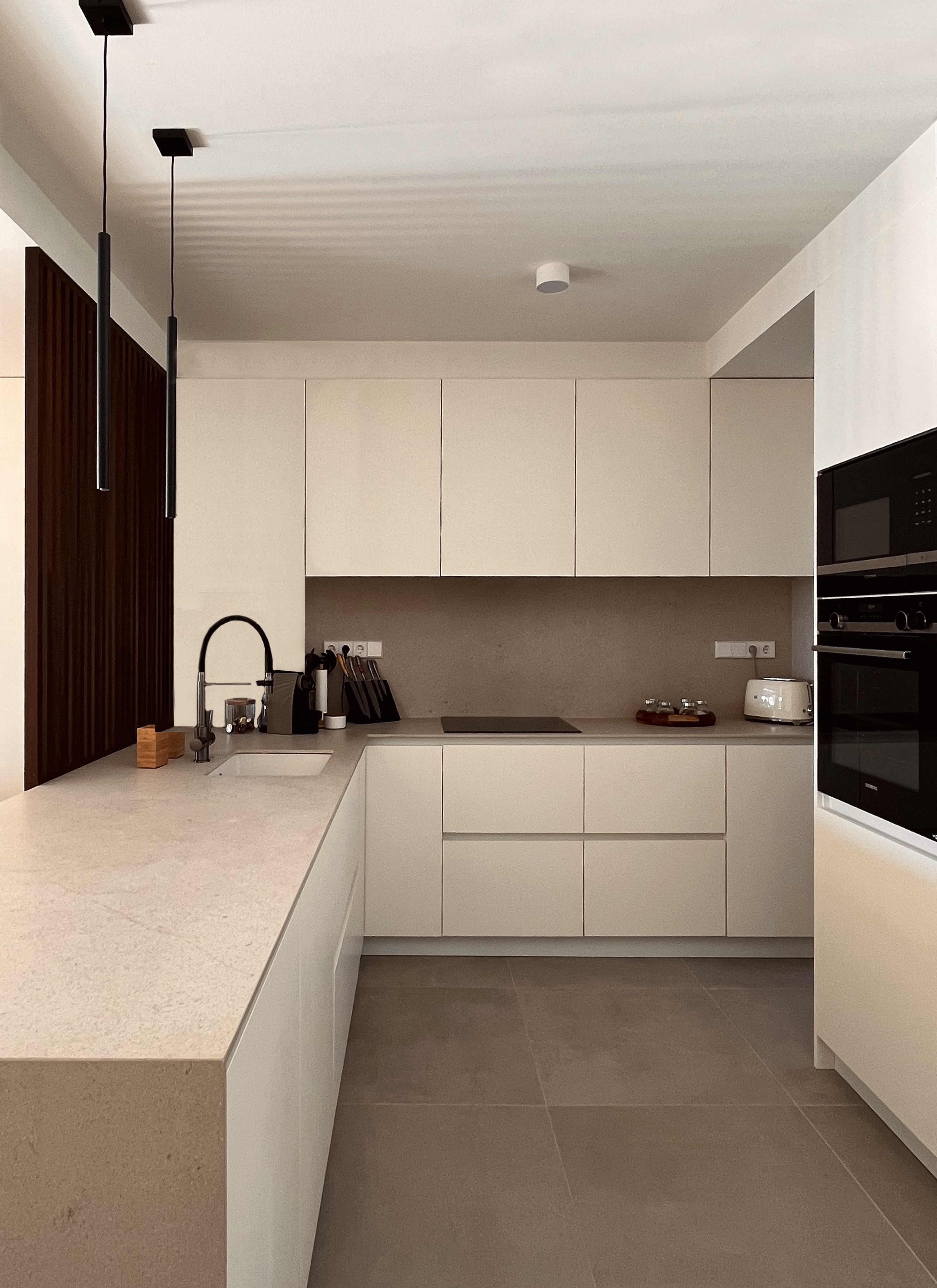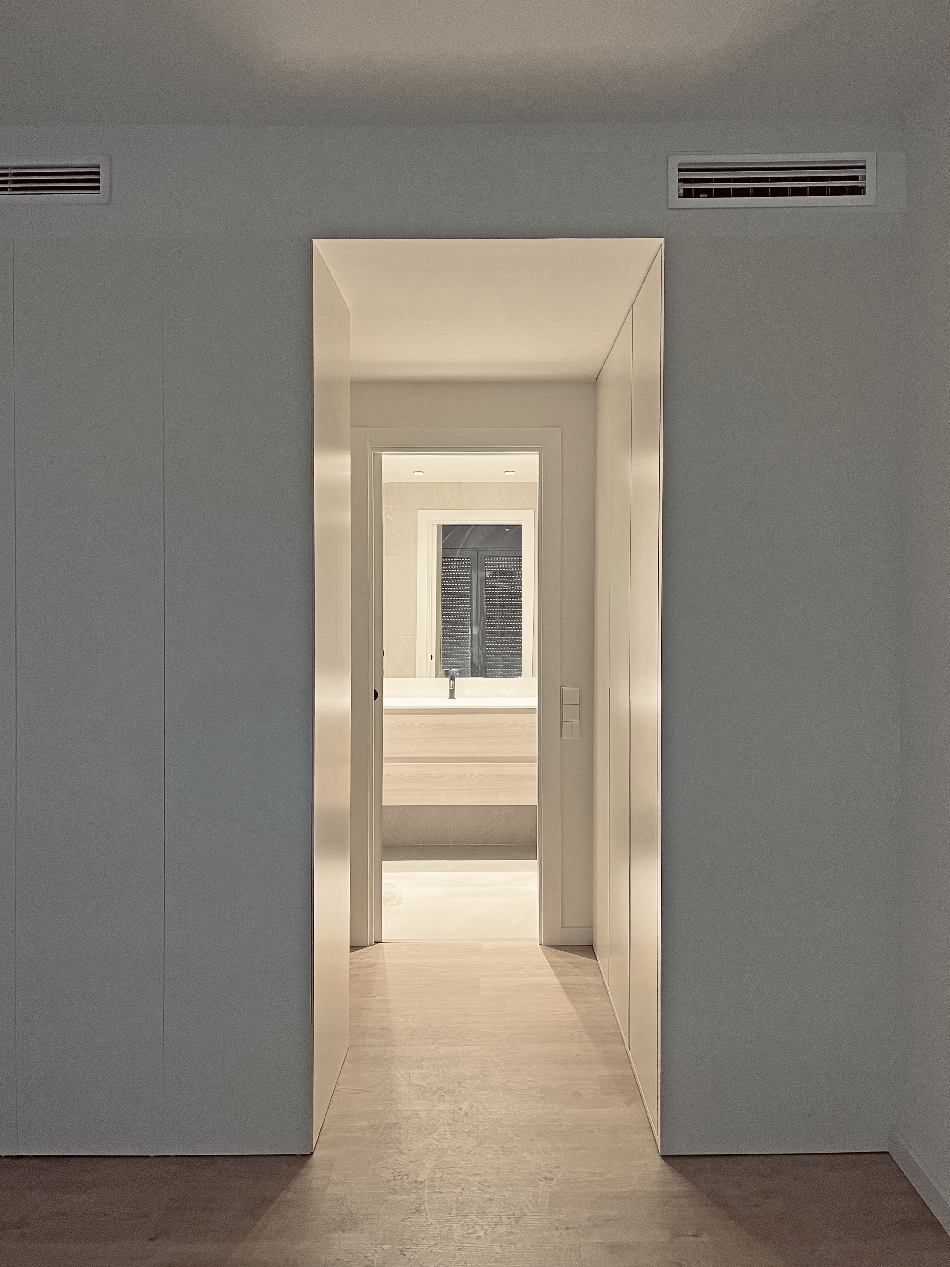 The finishes of the project respond to a desire for domesticity and serenity. In the main space there are elements that function as a visual filter, in wood and contrasting colour, offering intimacy with respect to the direct access.
